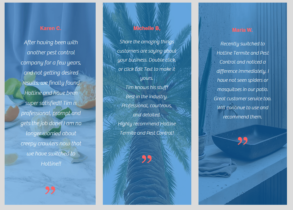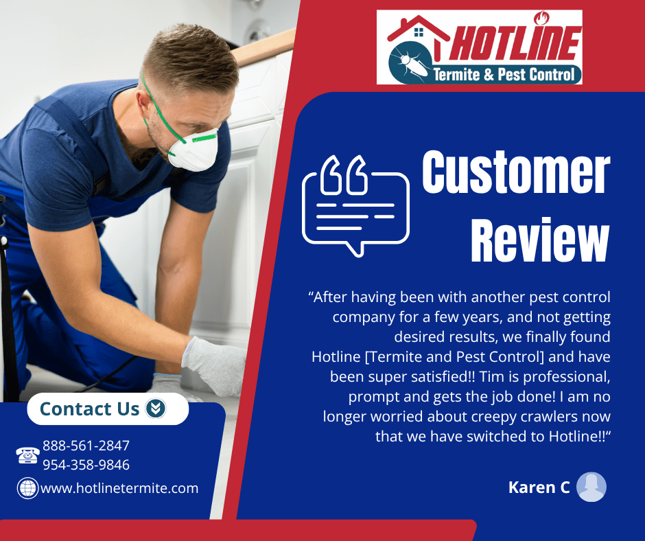 Hotline Termite and Pest Control is dedicated to providing effective and environmentally responsible pest management solutions. With years of experience in the industry, our team of professionals is committed to ensuring your home and business are free from unwanted pests.